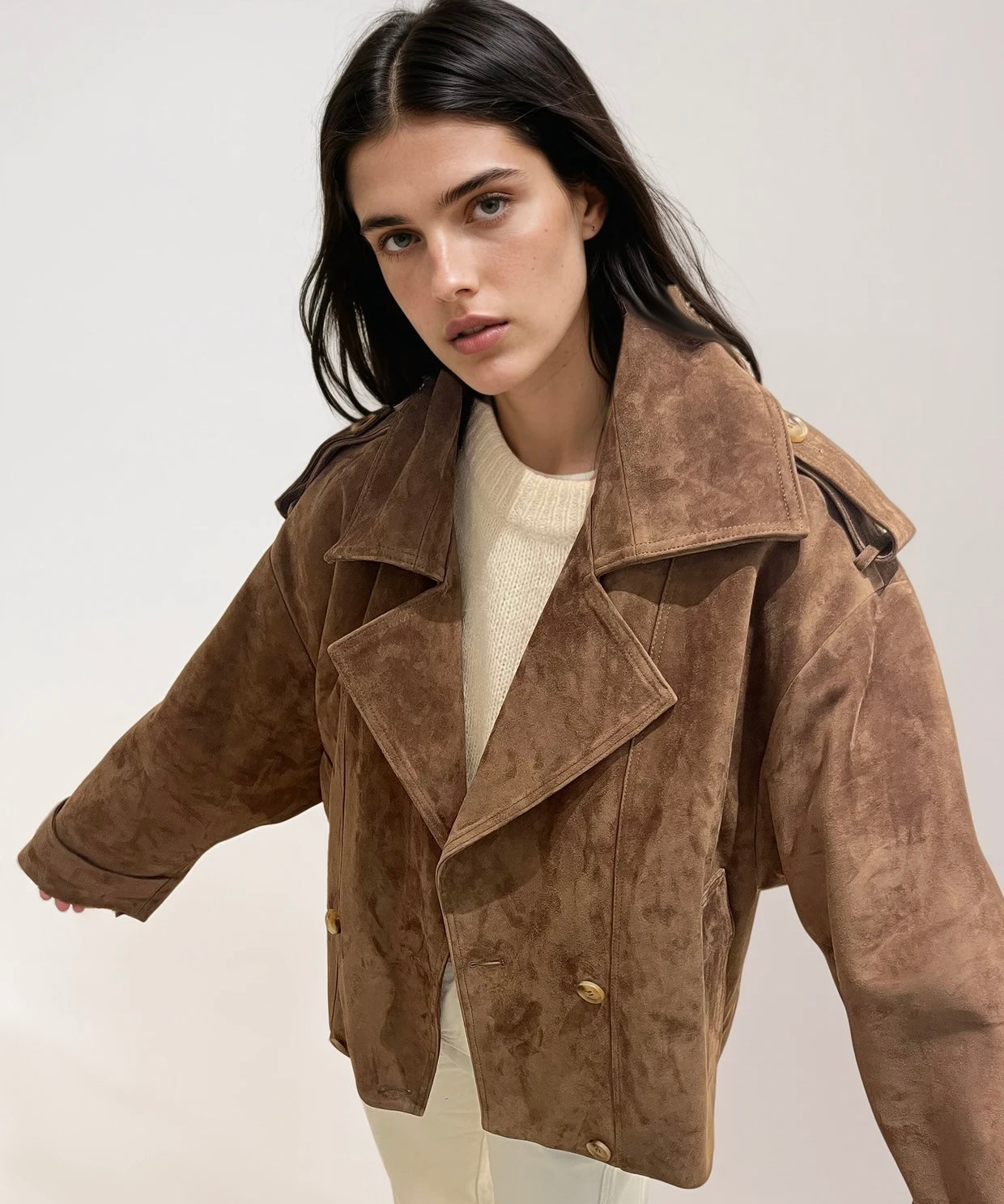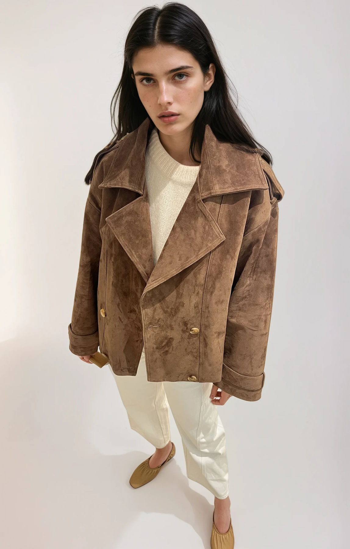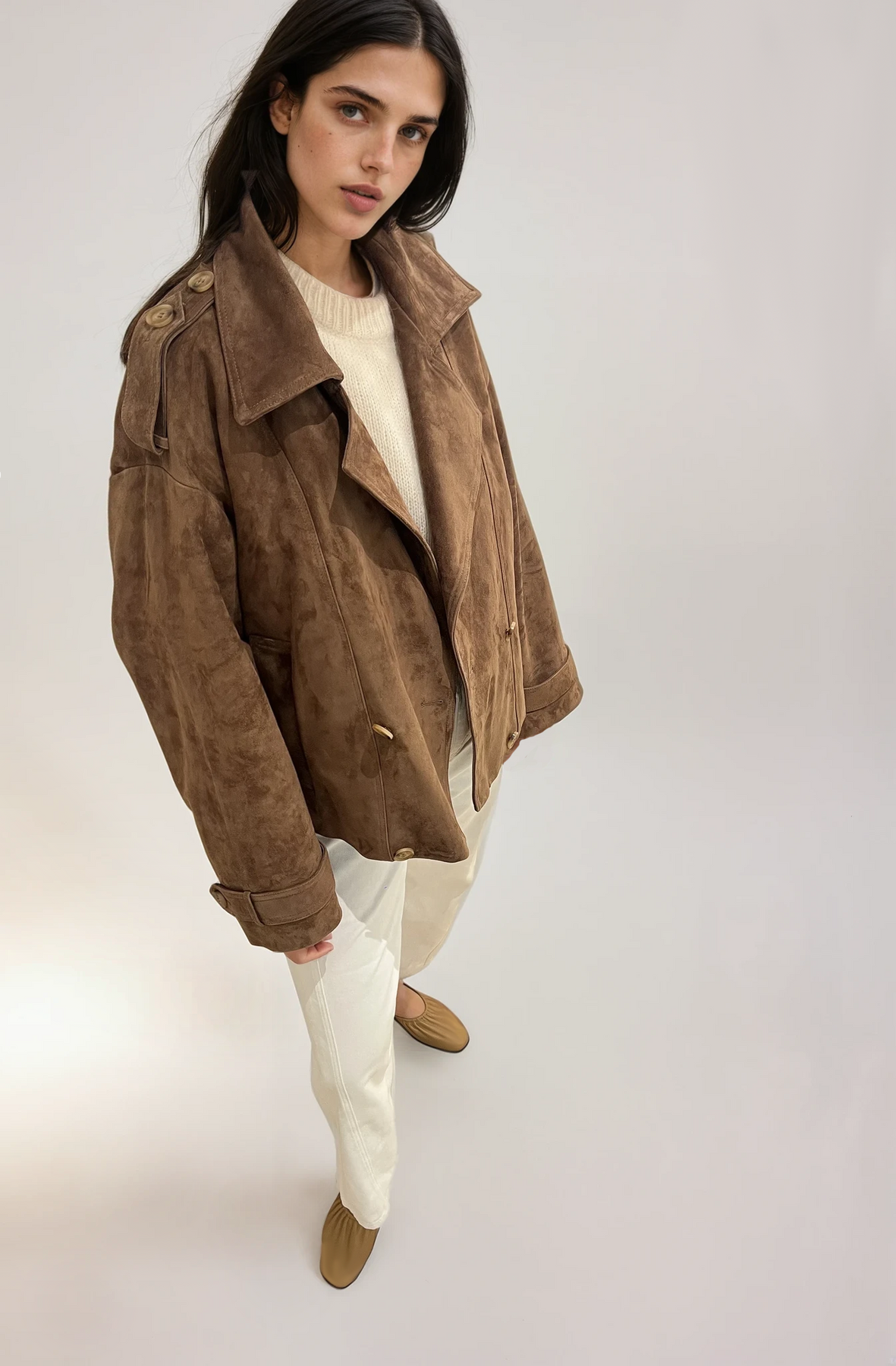 Oversize. Esta cazadora de ante en color caramelo es un básico atemporal para cualquier armario. Confeccionada en ante premium, el diseño oversize se adapta a diferentes siluetas. El forro interior garantiza protección térmica adicional.